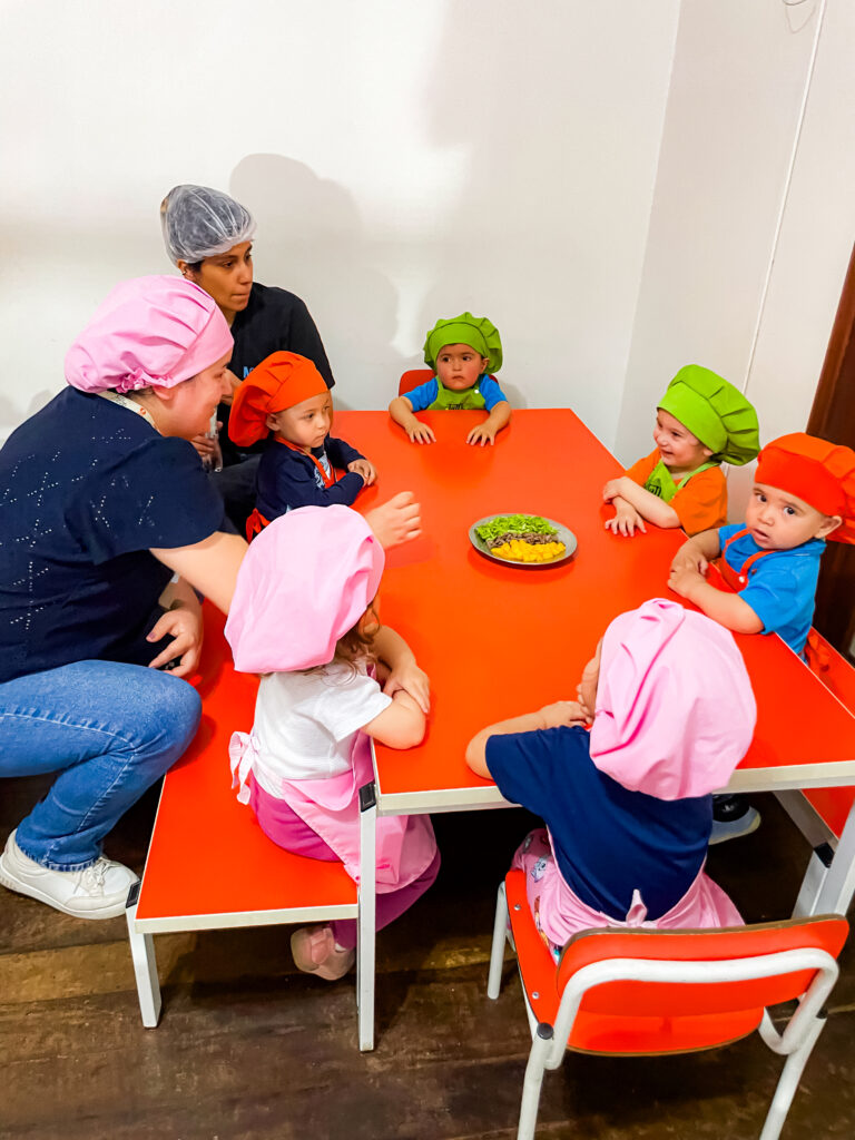 aprendizado. As crianças são incentivadas a experimentar novos alimentos,